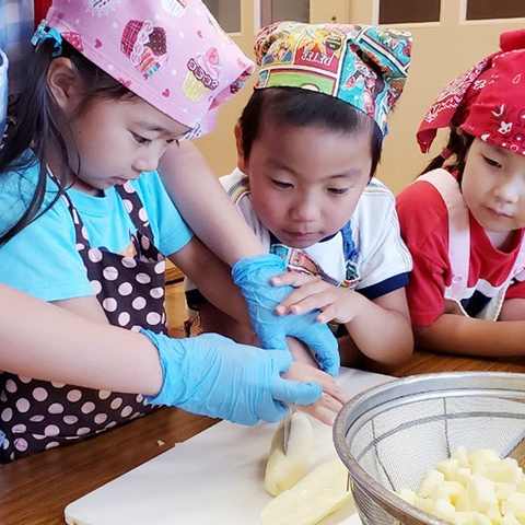 球根植え、田植え、野菜・果物の栽培、収穫、料理などの活動を取り入れてます